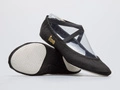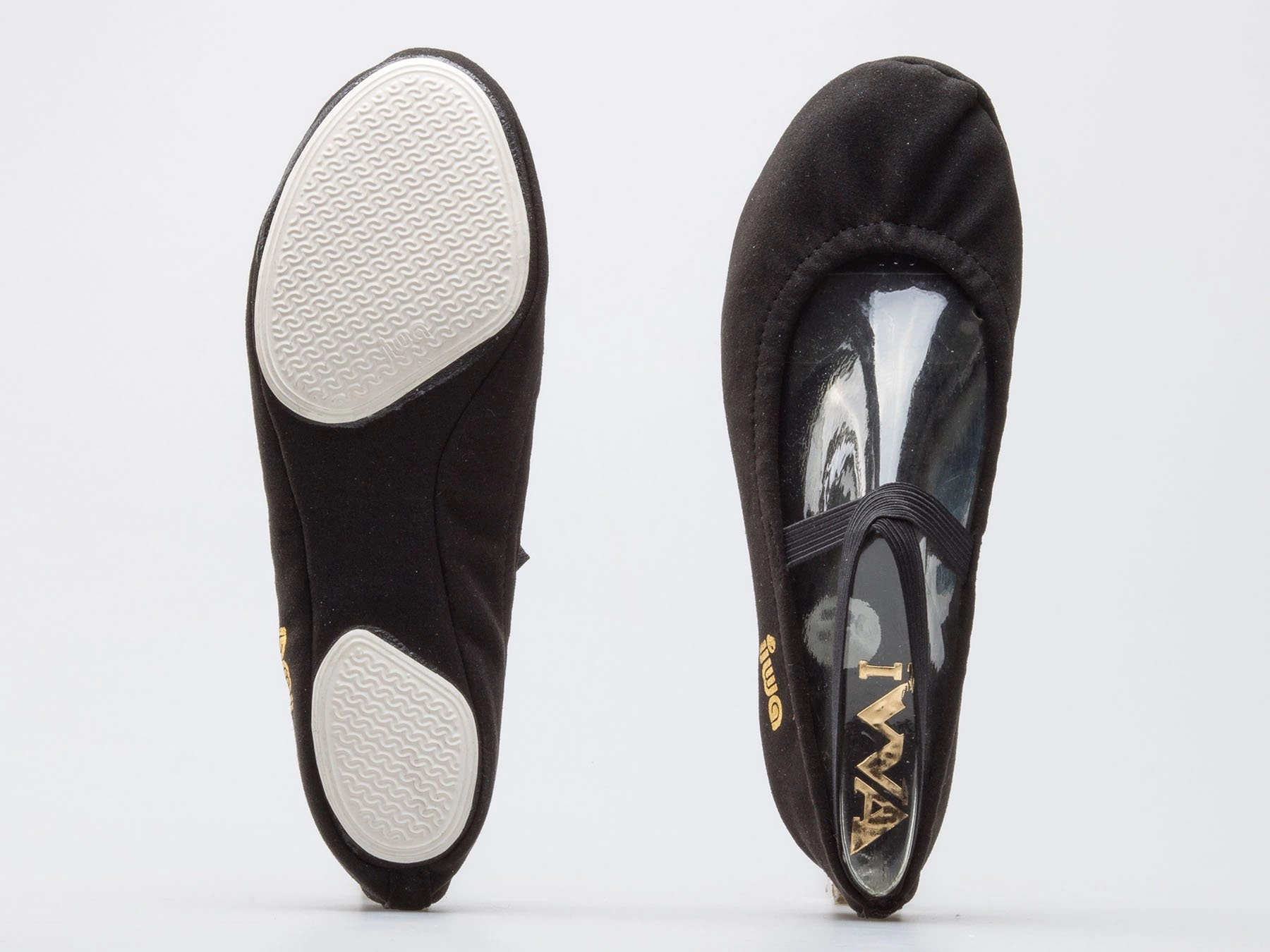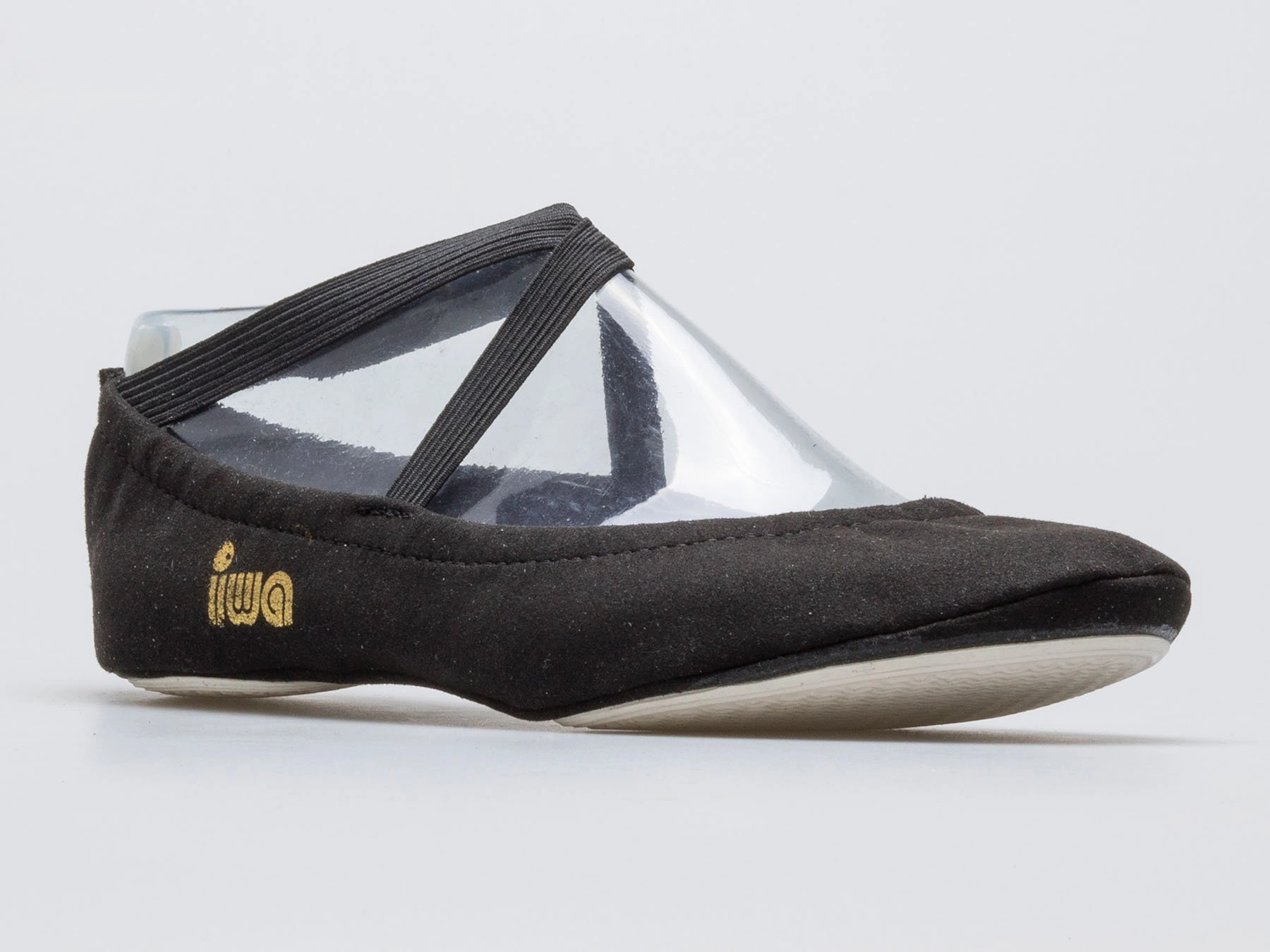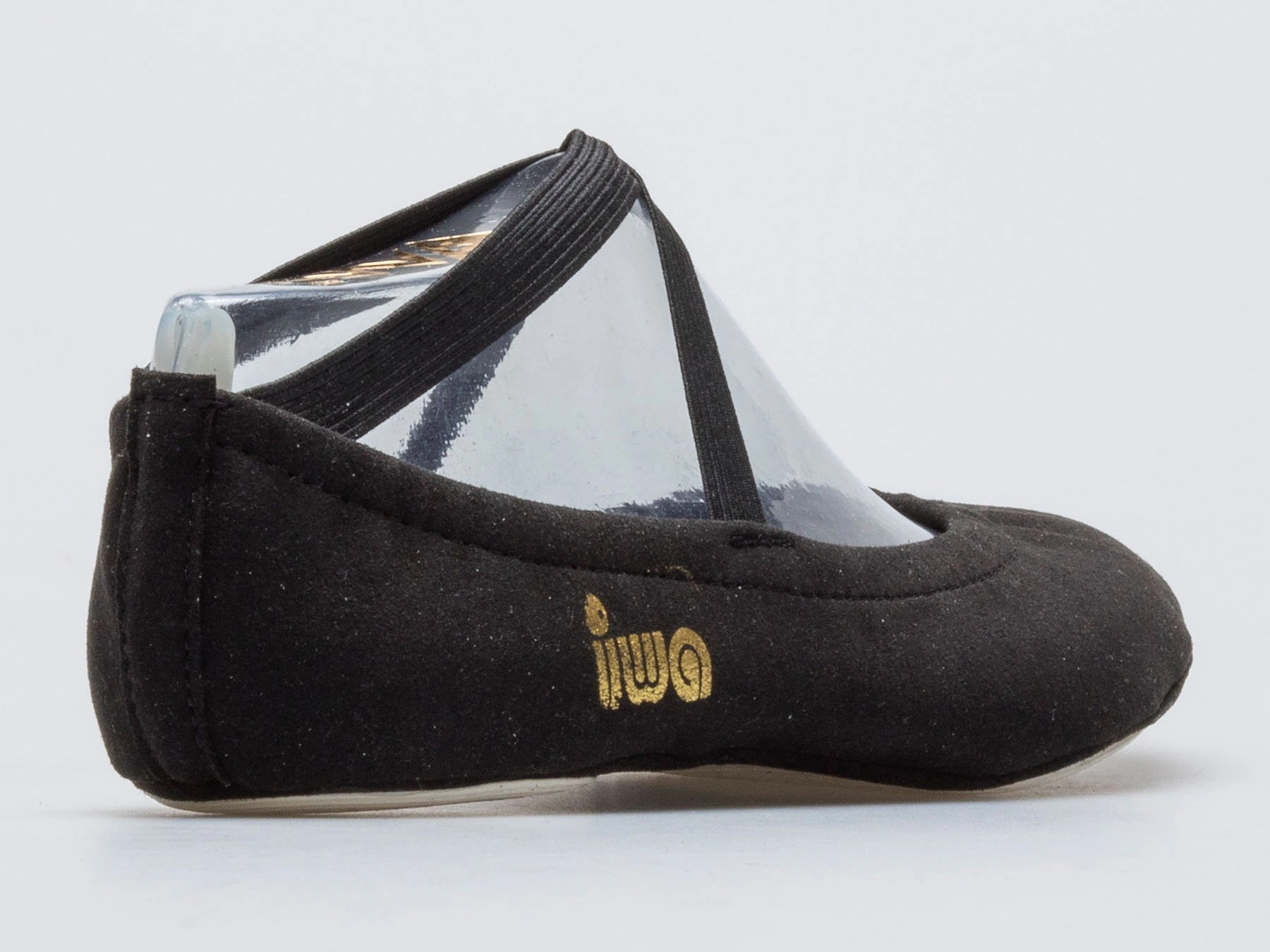 Baletki do gimnastyki sportowej doskonale sprawdzające się na ćwiczeniach na równoważni. Model w nowej, czarnej wersji kolorystycznej ze złotym logo IWA Gymnastics prezentuje się wyjątkowo na stopach każdego zawodnika. Profesjonalne baletki do ćwiczeń na belce wyposażono w dwie wytrzymałe gumki opasające stopę nie pozwalając tym samym aby baletki ześlizgnęły się podczas ćwiczeń. Mocno otwarta cholewka nie ogranicza ruchu palców podczas akrobacji a wysokogatunkowy materiał z którego jest wykonana pozwala cieszyć się obuwiem przez wiele treningów oraz zawodów. Specjalnie zaprojektowany bieżnik w antypoślizgowej podeszwie zwiększa bezpieczeństwo ale także znacząco poprawia komfort użytkowania. Model IWA 302 użytkowany jest przez profesjonalne drużyny gimnastyczne na całym świecie, dołącz do tego elitarnego grona już dziś kupują najnowszy model.