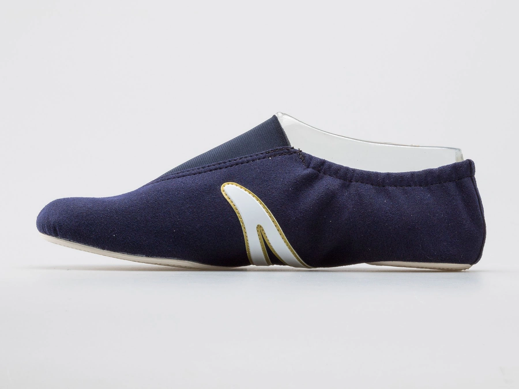 Na specjalne życzenie naszych Klientów udostępniamy baletki do gimnastyki sportowej w kolorze granatowym. Model IWA 499 navy wzbogacono o biało złote wstawki dekoracyjne co z pewnością pozwoli wyróżnić się na sali gimnastycznej. Wysokiej jakości syntetyczny welur z którego wykonano cholewkę to gwarancja wysokiej wytrzymałości przy jednoczesnym zachowaniu dużego komfortu podczas użytkowania na zawodach czy treningu na co dzień. Zastosowanie gumowej podeszwy z dodatkowo wszytą wkładką IWA-PowerGel poprawia amortyzację ale jednocześnie i bezpieczeństwo zapobiegając poślizgom. Specjalny ściągacz w górnej części cholewki zapewnia idealne przyleganie obuwia do stopy. Solidne obszycia oraz szwy gwarantują długą żywotność produktu o czym przekonało się już wielu zawodników do grona których możesz dołączyć już dziś.