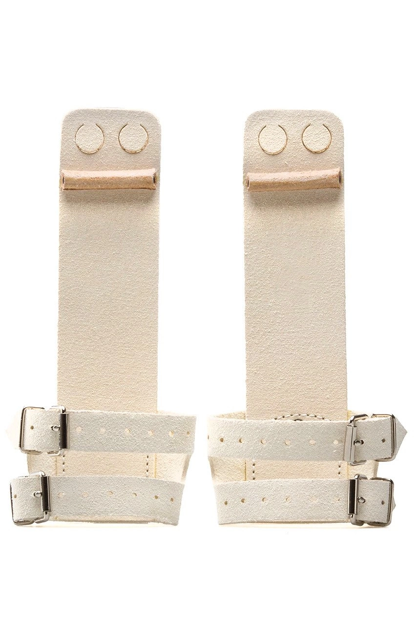 - Dwa otwory na palce oraz zapięcia na parę solidnych sprzączek na każdej ze skór.